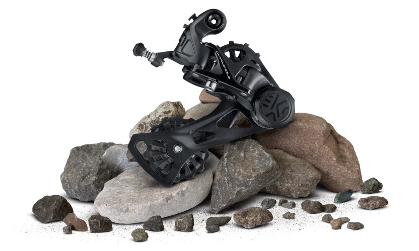 Přehazovačka je vyrobená z karbonem vyztuženého polyamidu a kromě toho, že je extrémně tuhá, je také lehounká. Pouze 275 g! S novým paralelogramem a novým systémem uchycení vodítka je navíc schopná spolehlivě vyrovnat rázy způsobené jízdou v terénu. Pro snadnější servisování nechybí ani zámek pro jednoduché vyjmutí kola z rámu.