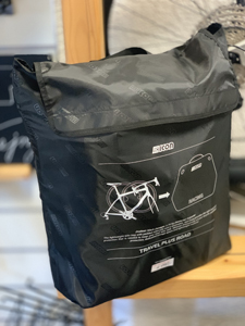Pro cestování kola letadlem je nejvhodnější pořádný kufr, aby letištní zaměstnanci neměli šanci vašemu miláčku ublížit, pokud ale cestujete se svým milým kolem autem, není potřeba se vláčet s těžkopádným kufrem na kolo. Vhodnější může být lehký látkový obal. Takovým je například SCICONSOFT BIKE BAG - TRAVEL PLUS. Ten má oddělené vnitřní kapsy na kola, která je nutná vymontovat. Ale to je jediný úkon, který před cestou musíte provést, tvar brašny umožní nechat řidítka ve výchozí poloze. Takto zabalené kolo můžetze v klidu naložit do auta aniž byste se museli bát, že si interiér zašpiníte od řetězu apod. Samotný prázdný vak se snadno přenáší, díky přiloženému obalu.